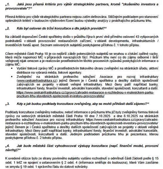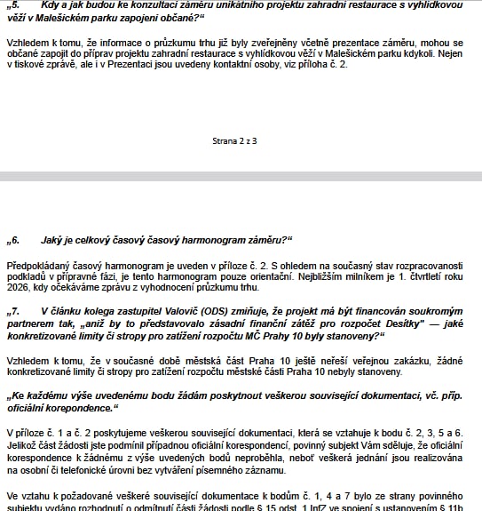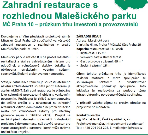 Informace k rozhledně s restaurací v Malešickém parku, které jsem si z pozice zastupitele vyžádal po zjištění informace o zahájení předběžných tržních konzultací ze strany MČ Praha 10.